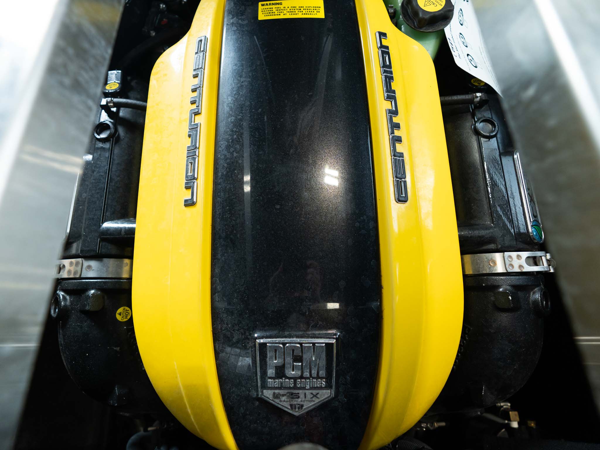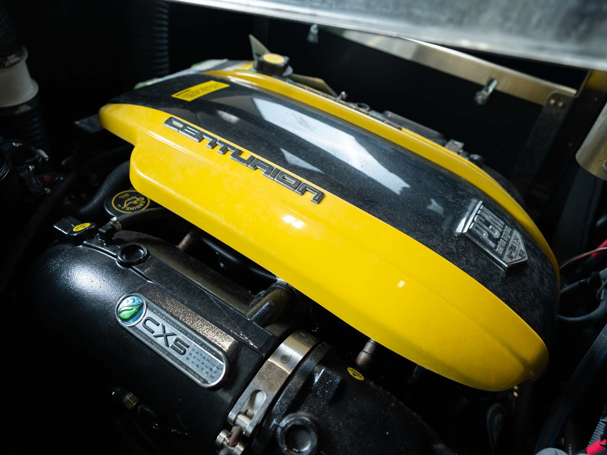 The 2022 Centurion Fi25 is powered by the PCM H6 and has 215 hours of use. Options include 2-Color Gator Step w/ Centurion Cut Graphics, Cobra Racing driver's seat, Champ audio, transom storage locker, Ramfill 2.0, heater, bow filler cushion, stinger plate, Sewlong XXL bimini, tandem axle trailer, surge brakes, XL rear boarding steps.