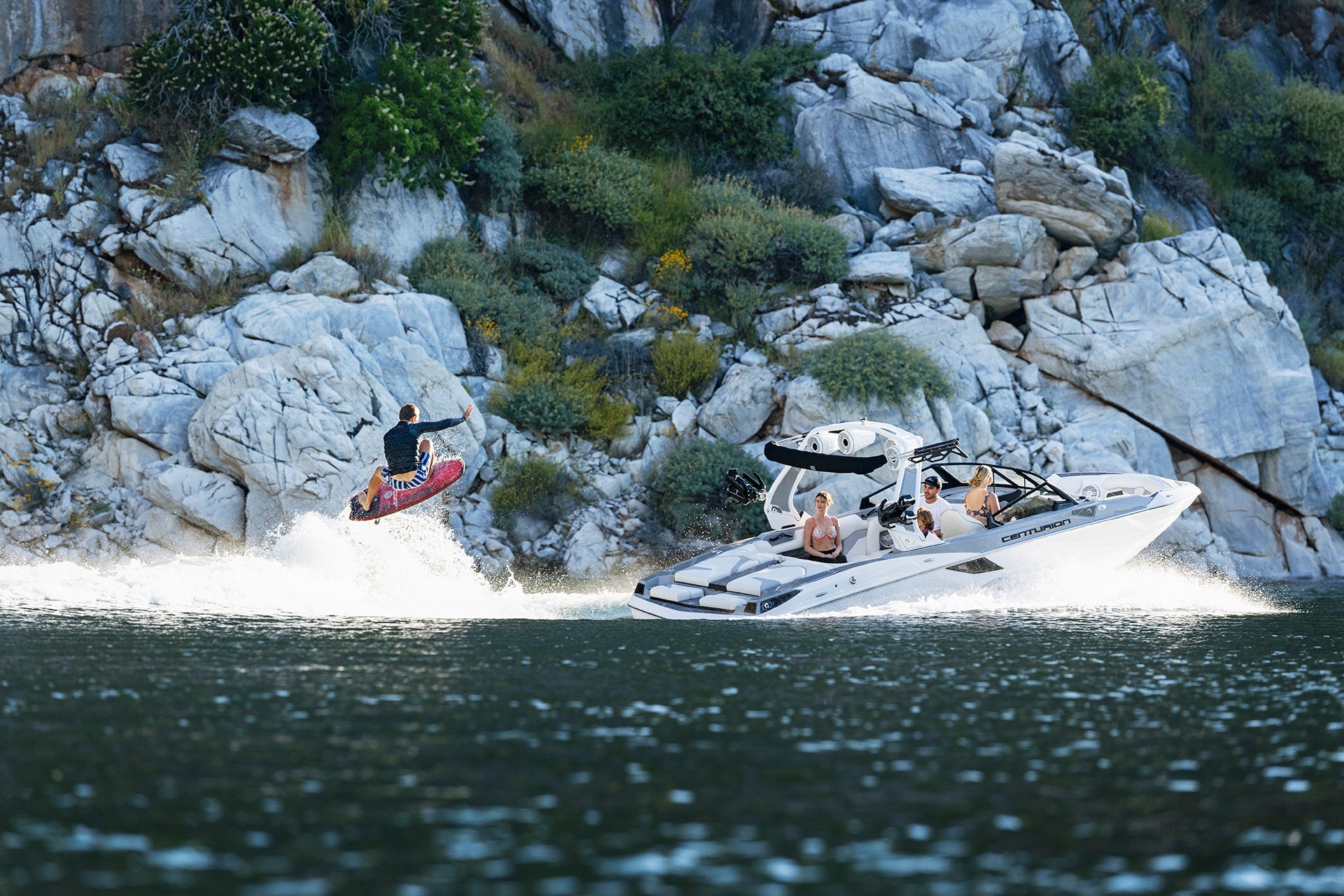 Equipped with up to 5,600 pounds of ballast, the boats in the Centurion Fe series create large, powerful waves that provide an exhilarating surfing experience, unmatched in its class.